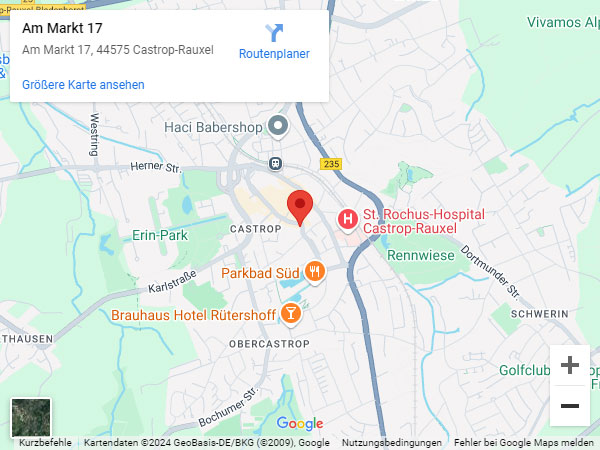 Durch einen Klick auf die Karte gelangen Sie zu der externen Webseite von Google Maps und können sich dort Ihren Routenplan zu uns anzeigen lassen. (© Google)